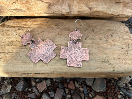 Copper, Sterling Silver and Lapis Earrings