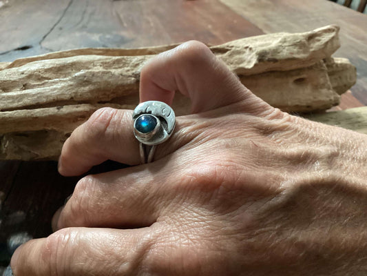 Sterling Silver and Labradorite Moon Ring