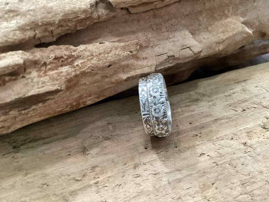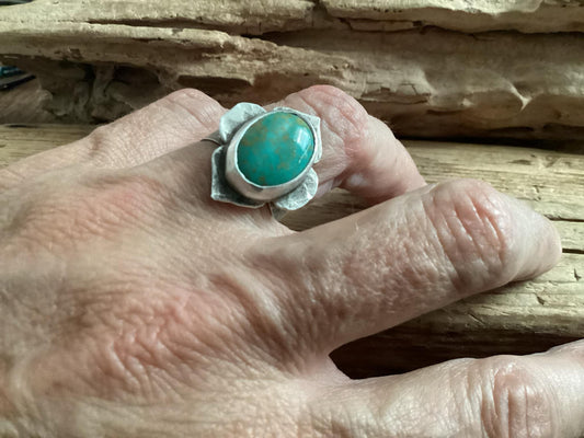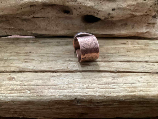 Copper and Tourmaline Hammered Ring, Size 6.75